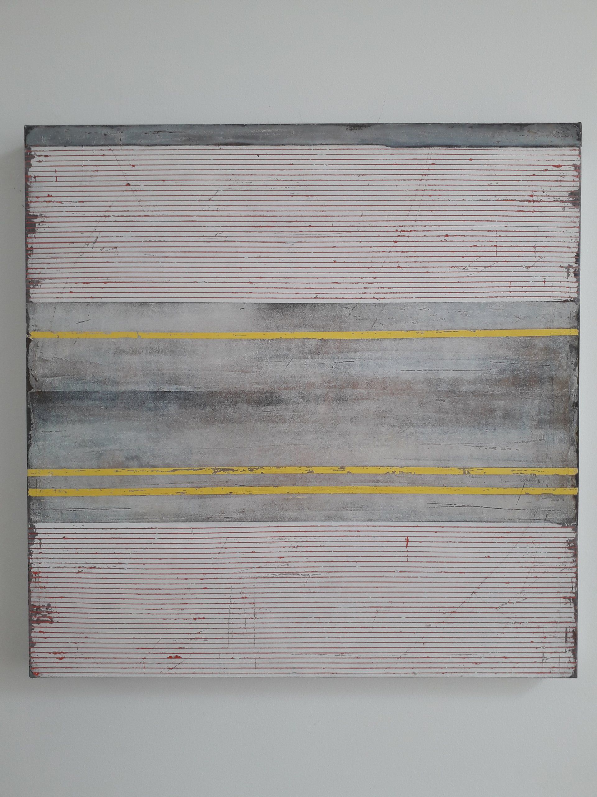 Like old walls, where fragments are partially missing or the façade is flaking. I achieve this by working out many coats of coulors and materials until a three-dimensionality is created.
